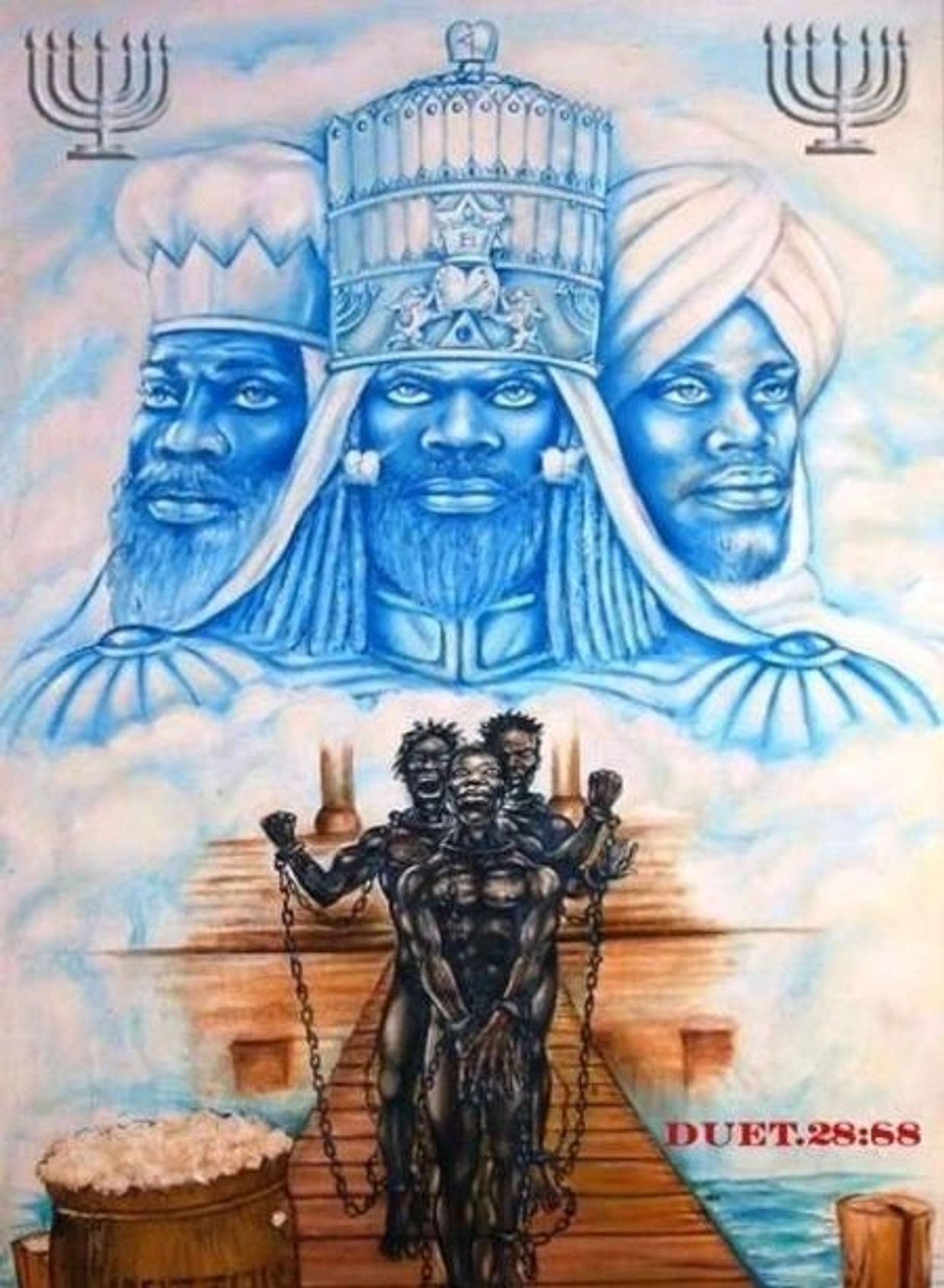 The scriptural reference to the arrival of Israelite slaves on ships in America/Egypt is Deuteronomy 28:68, which reads as follows: